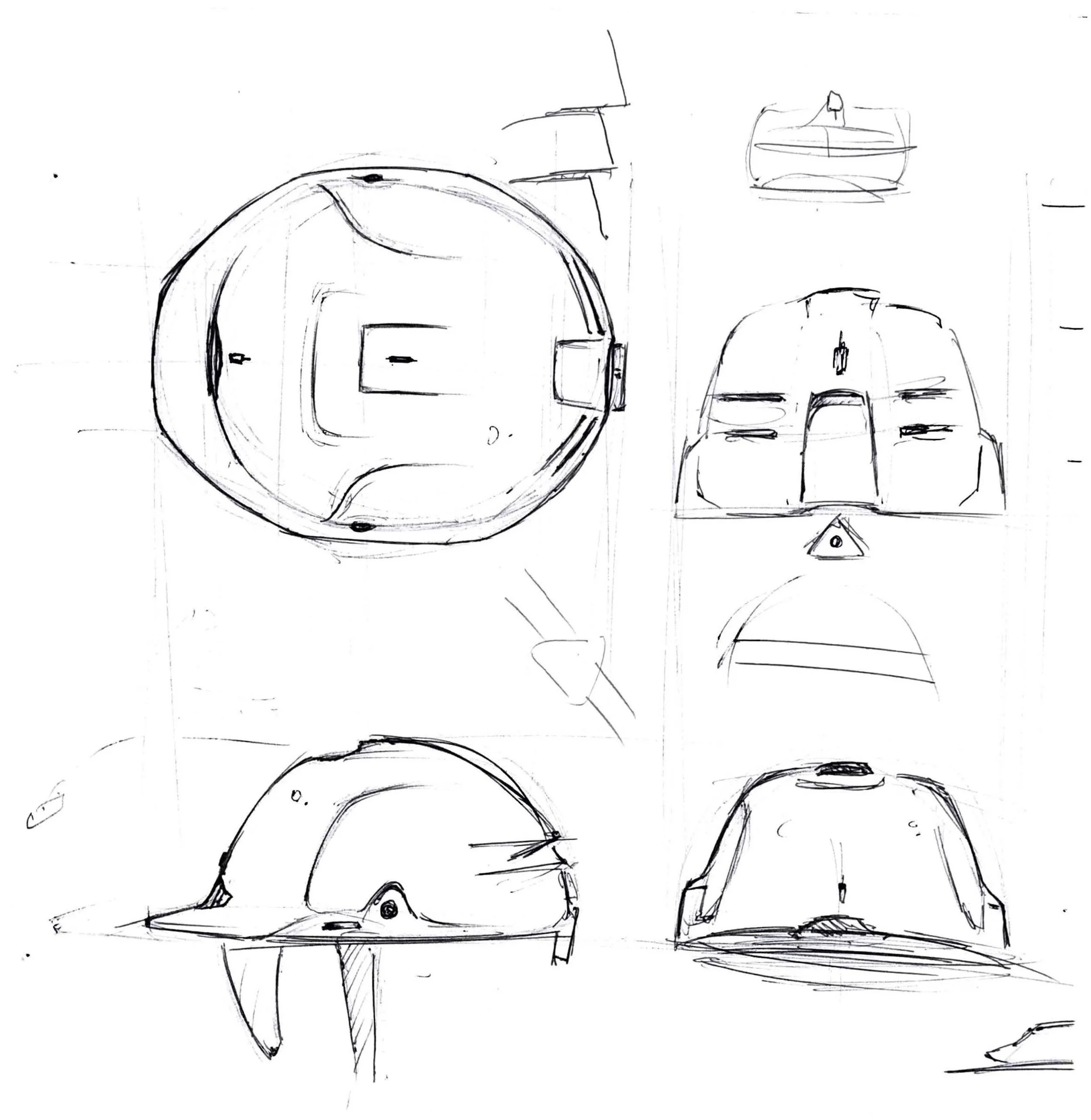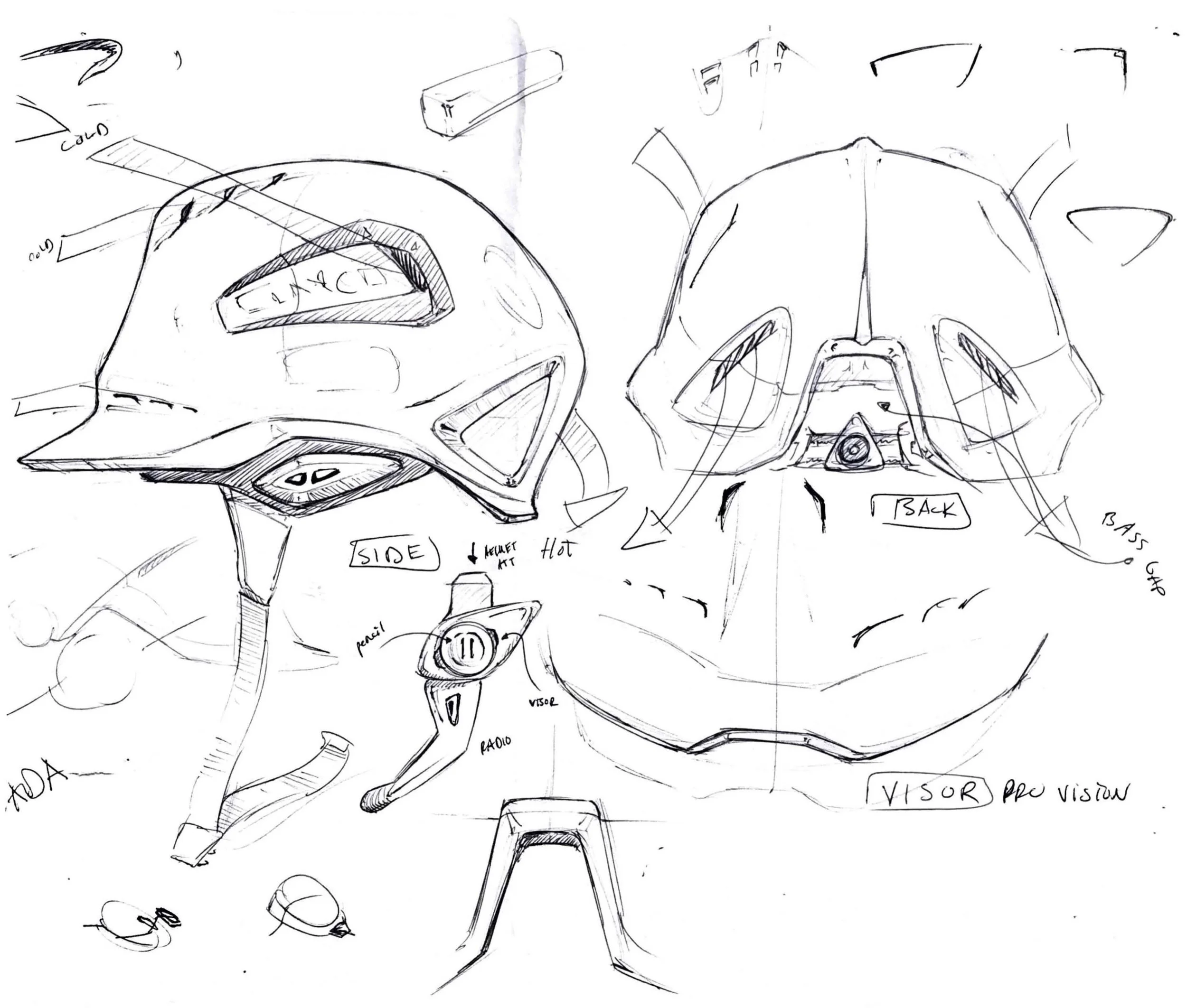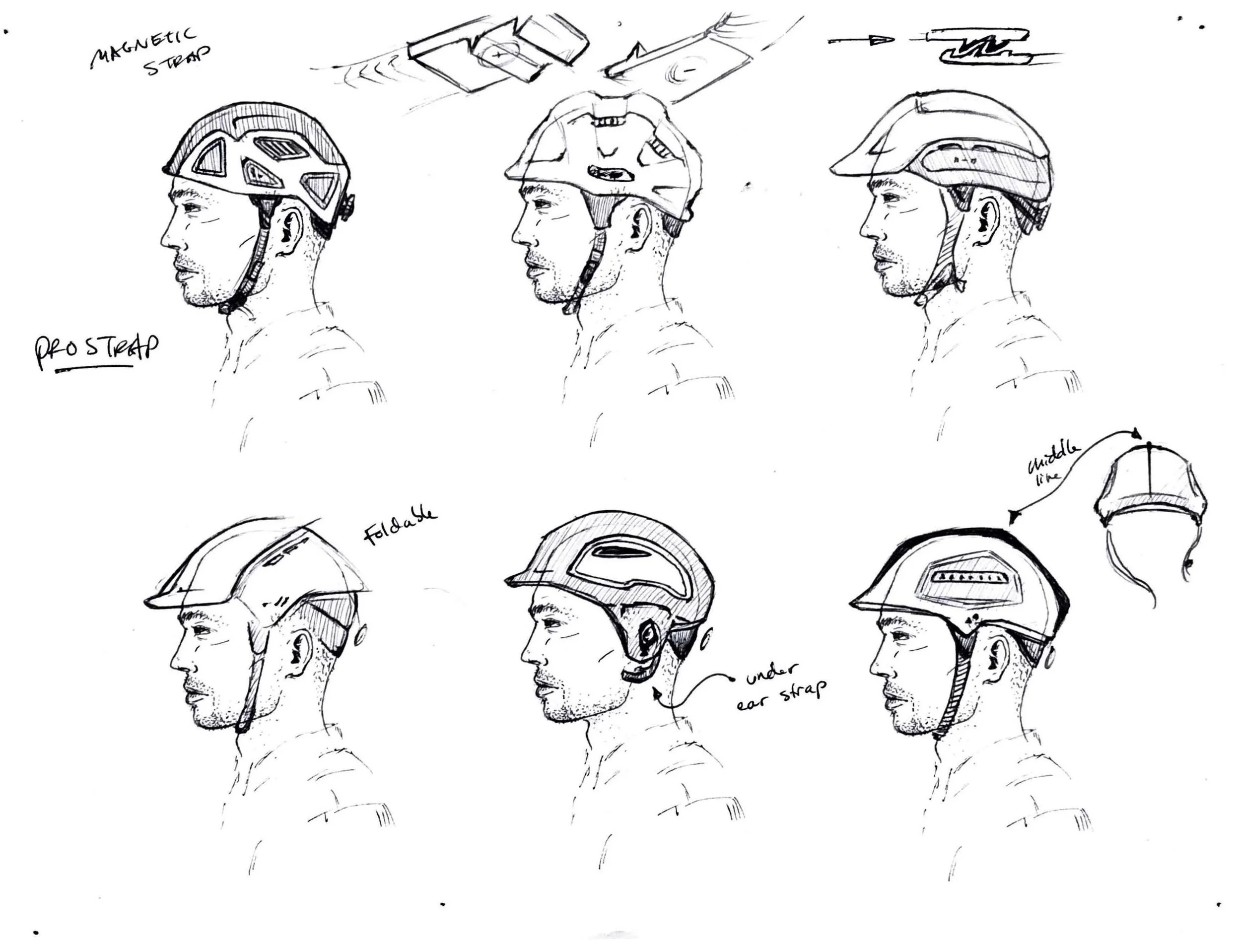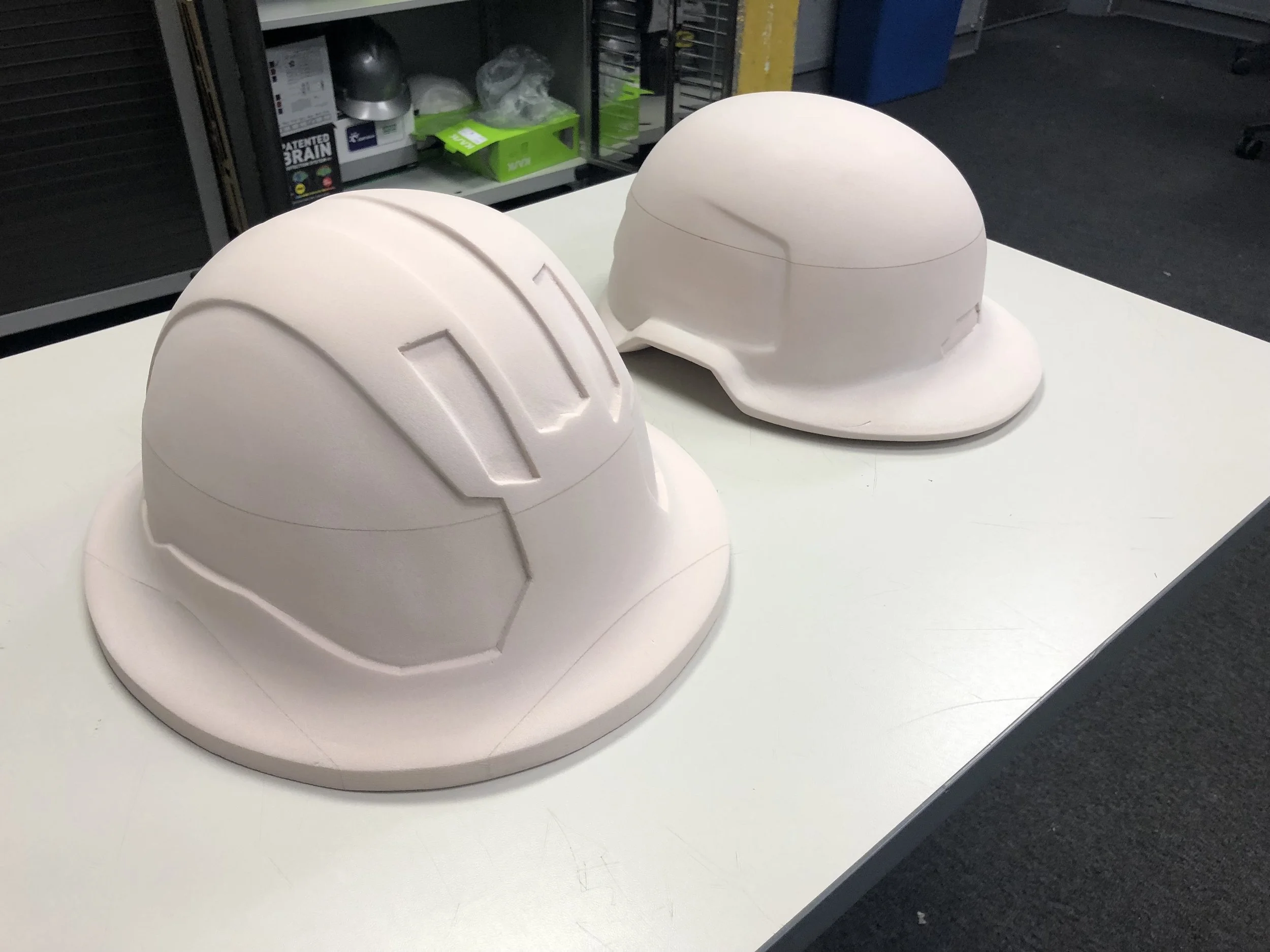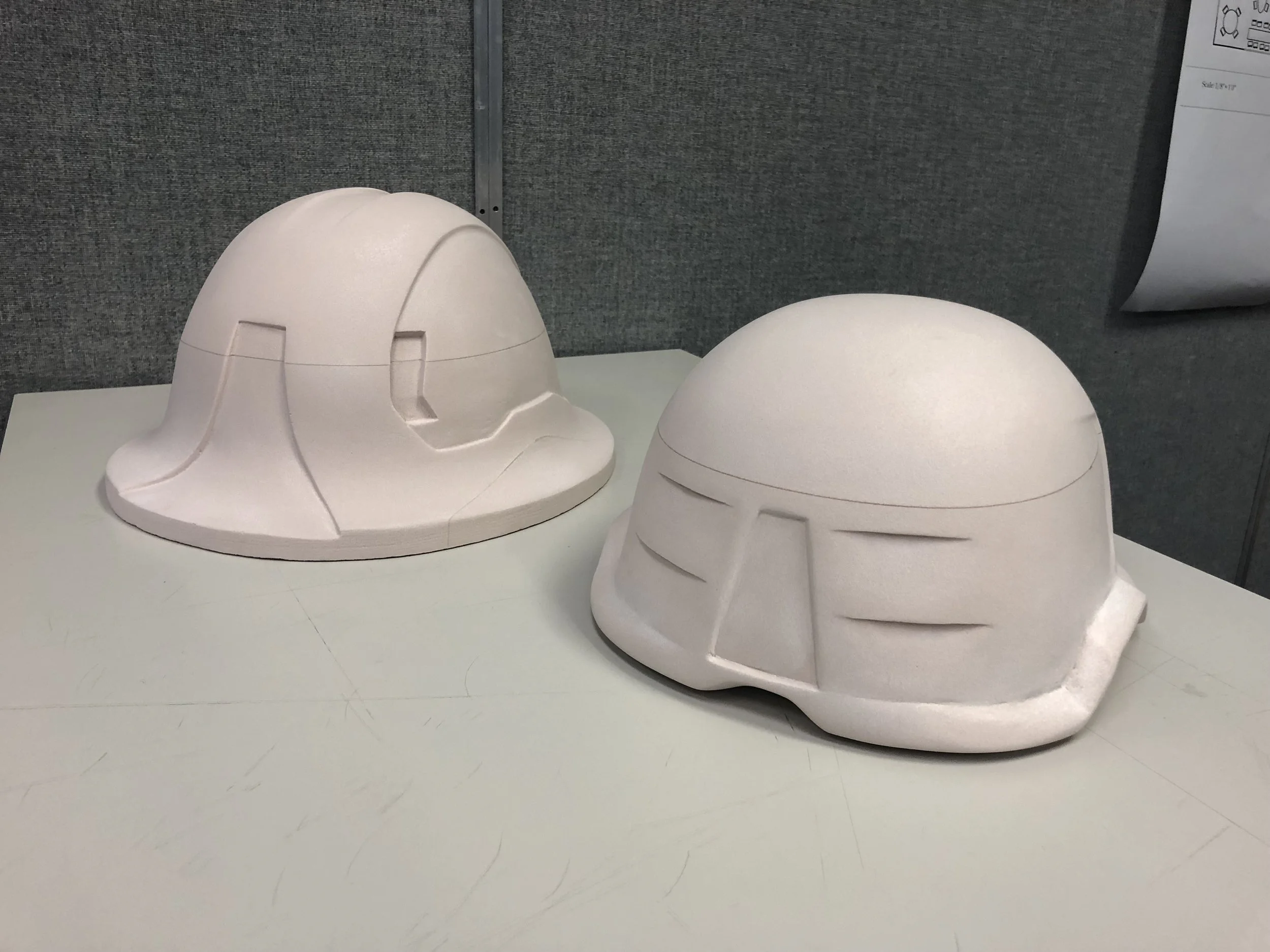 I was the Lead Design Sketcher on this entire project and helped on a majority of the prototyping phase. Being the Lead Design Sketcher I directed the ideation, design, and finalization of these prototypes on paper as well as all the attachments that go with them. The design drawings and dimensions were carried out by me and another student designer. We also created Adobe Photoshop renders for each helmet. I then helped with hand carving the three high-density 20 lbs. REN foam models.